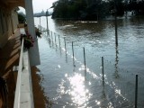 Als Ende August 2002 die Elbe über ihr Ufer trat und ihren Höchststand von 9,80 m erreicht hat, war zwangsweise auch unser Haus von den Fluten betroffen. Unsere Kegelbahn stand komplett unter Wasser und wurde vollständig zerstört. Die darüber liegende Etage, in der sich unsere Lagerräume und auch die Pension befinden, war ca. 1,60 m überflutet.